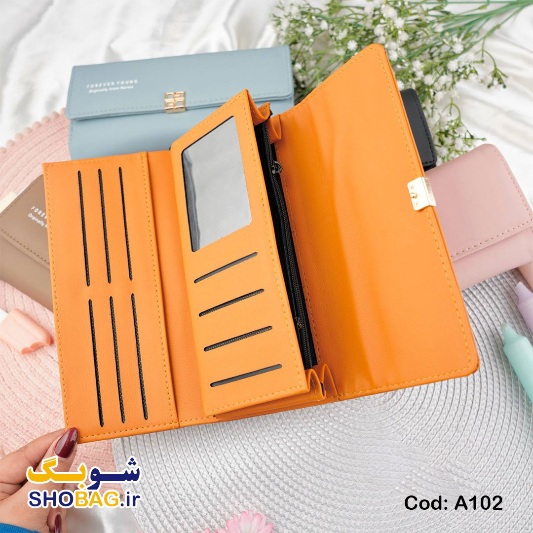 کیف پول زنانه A102 با طراحی شیک و مینیمال، انتخابی ایده‌آل برای خانم‌هایی است که به نظم و زیبایی اهمیت می‌دهند. این مدل به صورت کتابی باز می‌شود و فضای جادار آن کمک می‌کند تمامی کارت‌ها، اسکناس‌ها و مدارک خود را به‌راحتی همراه داشته باشید.